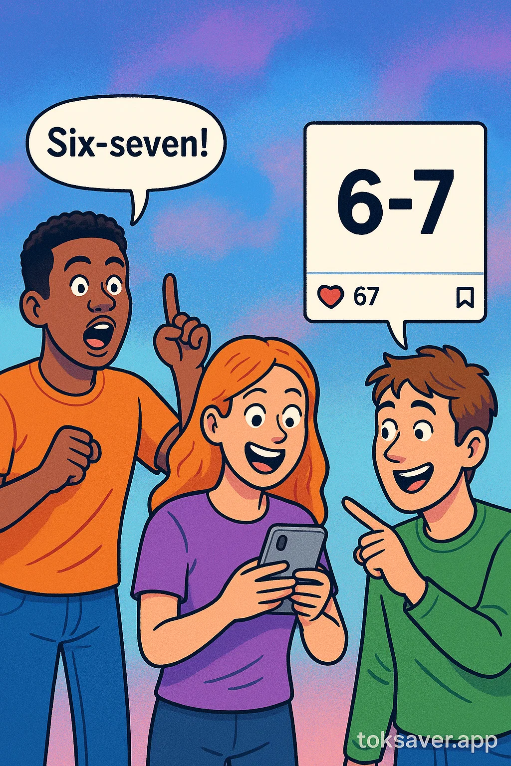 Named 2025 “Word of the year” by dictionary.com, the “6-7” or “67” meme is a viral phrase with no fixed meaning. Most users who use it just shout “six-seven” or write “67” in captions — and the randomness is the point. It originated from the song Doot Doot (6 7) by Skrilla and became popular especially in sports/basketball contexts (because “6ft 7in” appears, etc) but spilled over into pure meme territory. It trends on TikTok because it breaks expectations and invites remixing.